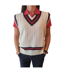 Introducing our Gilet Cable Knit, a timeless and elegant vest crafted in pure merino wool, perfect for adding a touch of sophistication to your golf attire. The classic cable knit design and V-neck silhouette give this vest a refined and traditional look, while the contrasting finishes add a unique and iconic touch. The natural lightness of merino wool ensures that this gilet is not only stylish, but also incredibly comfortable and warm, making it the ideal choice for layering on cooler days out on the golf course. Embrace the luxurious and linear design of this Italian-crafted garment and elevate your golf fashion with a touch of timeless style.